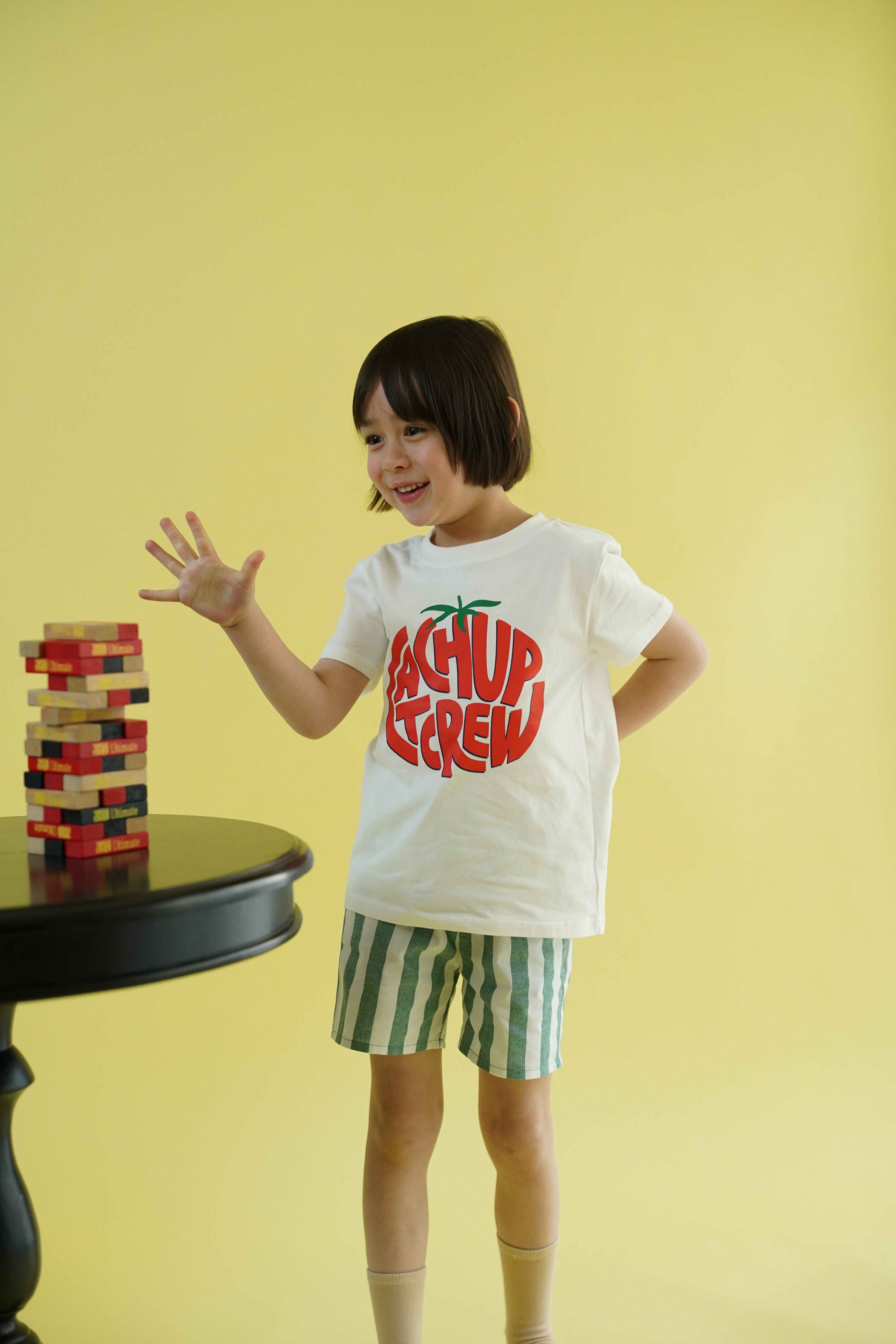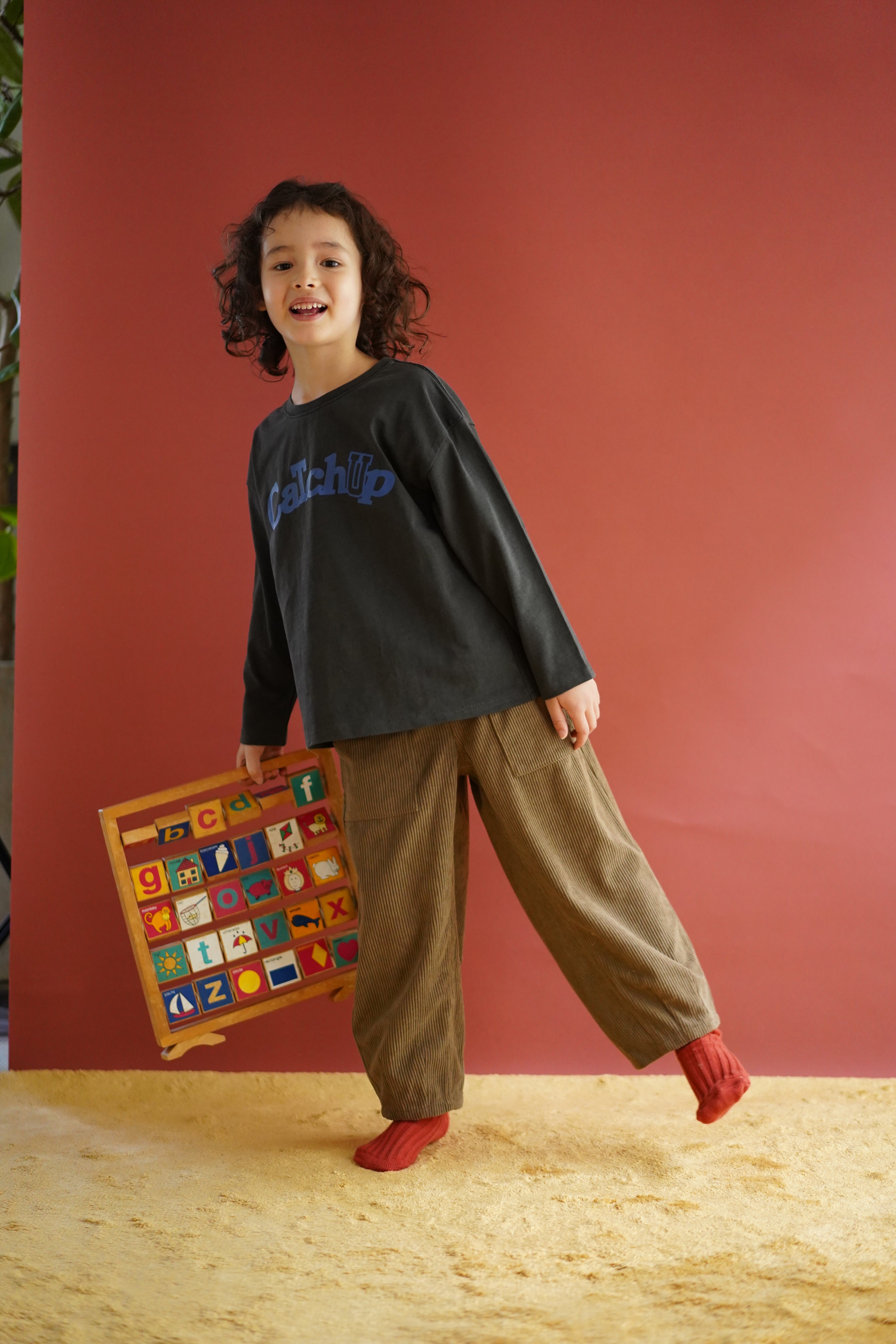 平日の5日は、毎日ジャブジャブお洗濯できるベーシックなお洋服や、元気が出るようなグラフィックTシャツを。