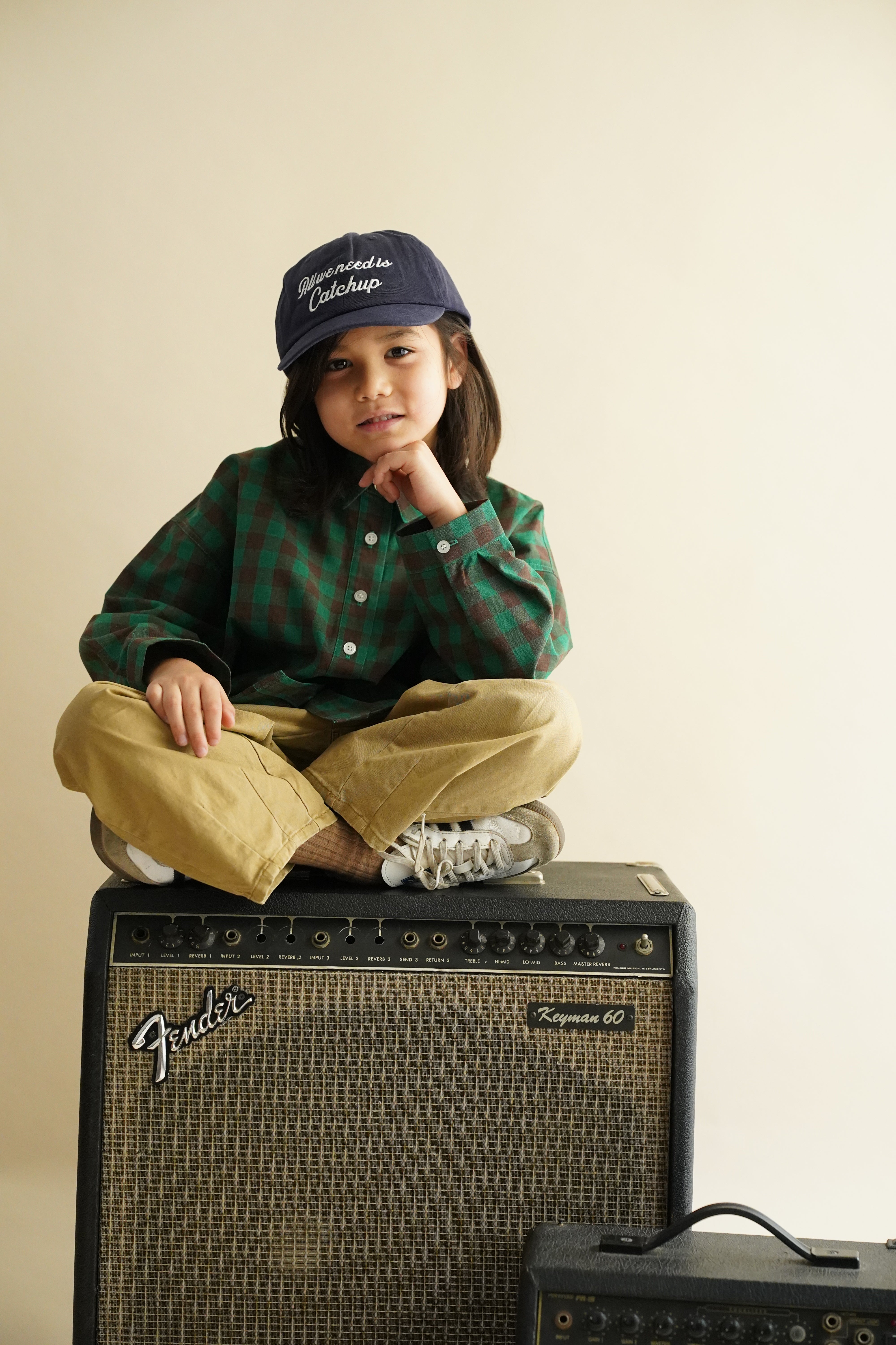 ナチュラルな風合いのチェック柄が、コーディネートにほどよいアクセントをプラス。